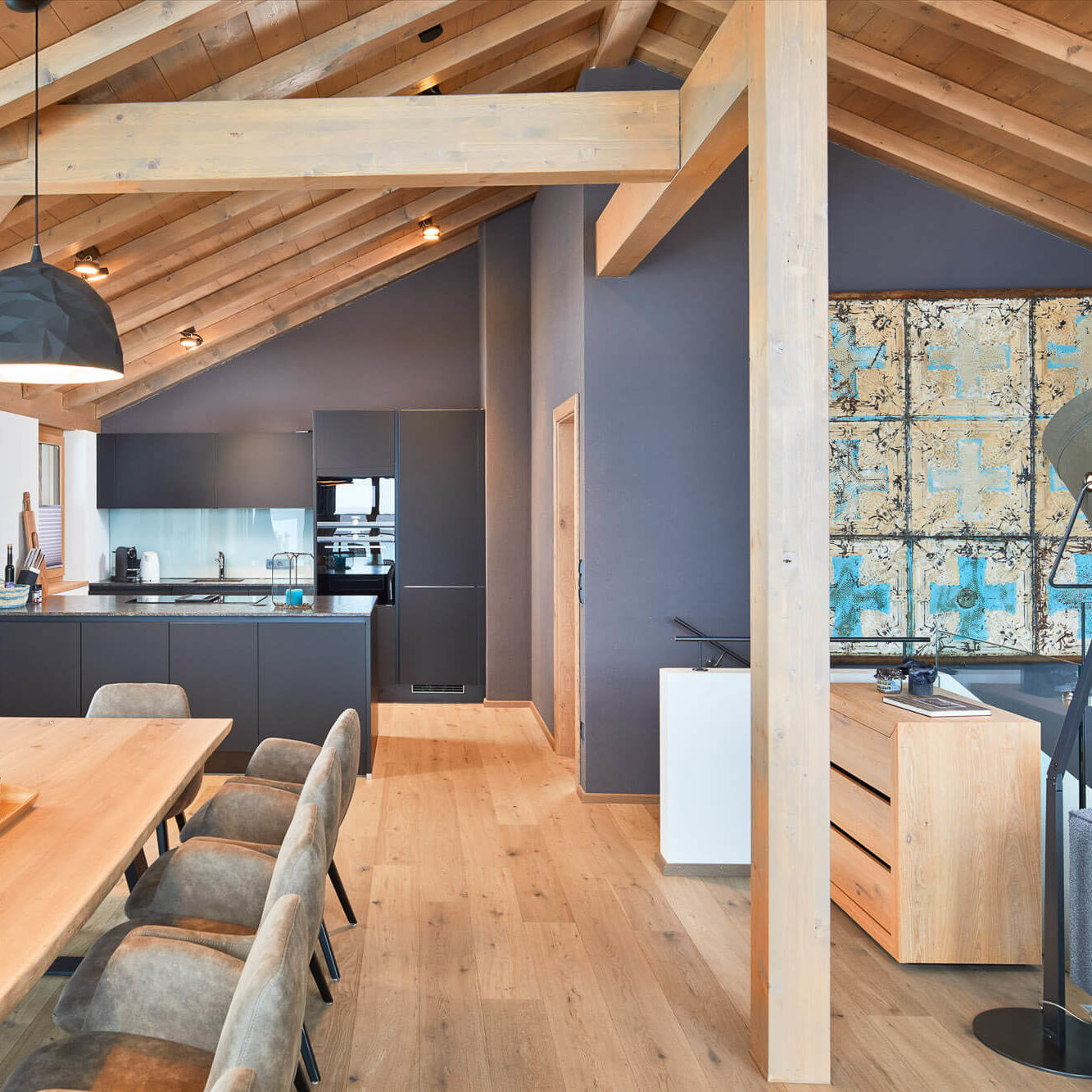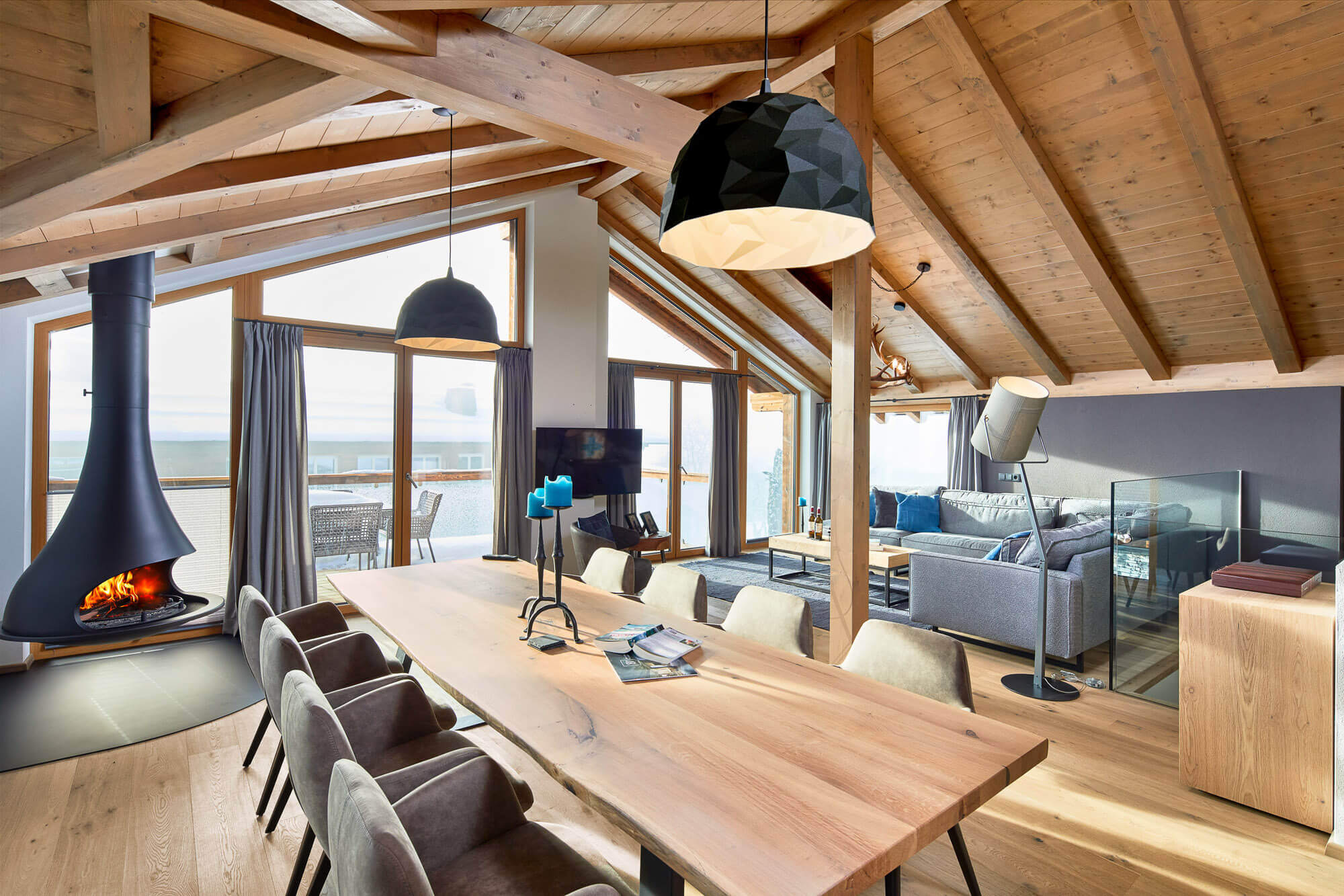 Chalet Cool heeft ramen van vloer tot plafond, die een prachtig uitzicht bieden over de bergen en die de ruime living vullen met daglicht. De slaapkamers (5) zijn voorzien boxspringbedden. De designkeuken en luxe badkamers zijn van alle gemakken voorzien. En de eigen privésauna en garage voor het opbergen van ski’s, schoenen en fietsen, maken het Chalet helemaal áf.