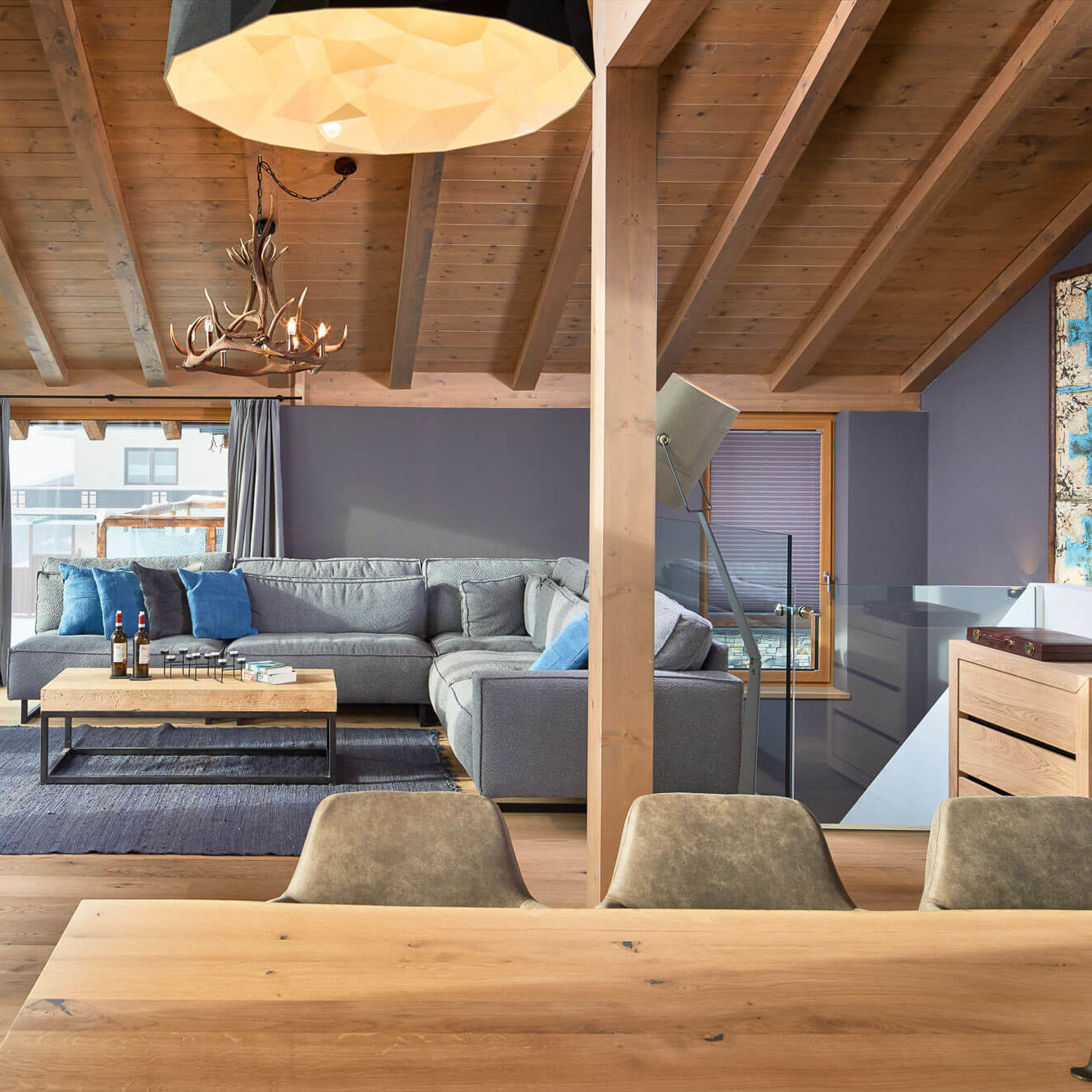Heerlijk huiselijk. Smaakvol ingericht en voorzien van alle denkbare luxe en comfort. Een flinke living, keuken en eetkamer, royale balkons, groot terras, 5 slaapkamers, 3 badkamers, skiraum, privé sauna… wat wilt u nog meer?